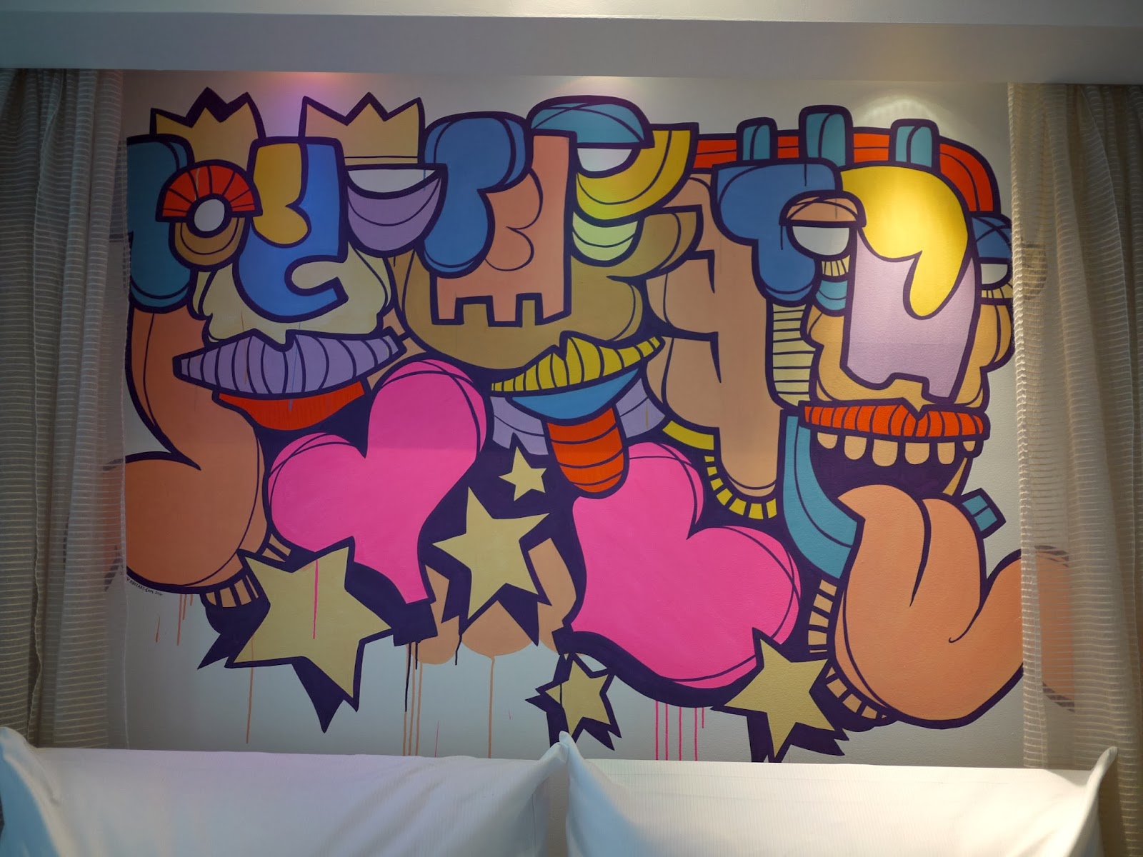 Two weeks ago I was invited to Paris amongst other artists in order to paint some hotel rooms in Le Marais, the 3rd district of the french capitol. Our art now decorates the rooms there and accompanys the guests during their stay, if you want to sleep in an Oibel Room just ask for the numbers 121, 132 or 232 at the Streets Hotel on Boulevard du Temple. You will find more images of the work I did after the click… et voilat!