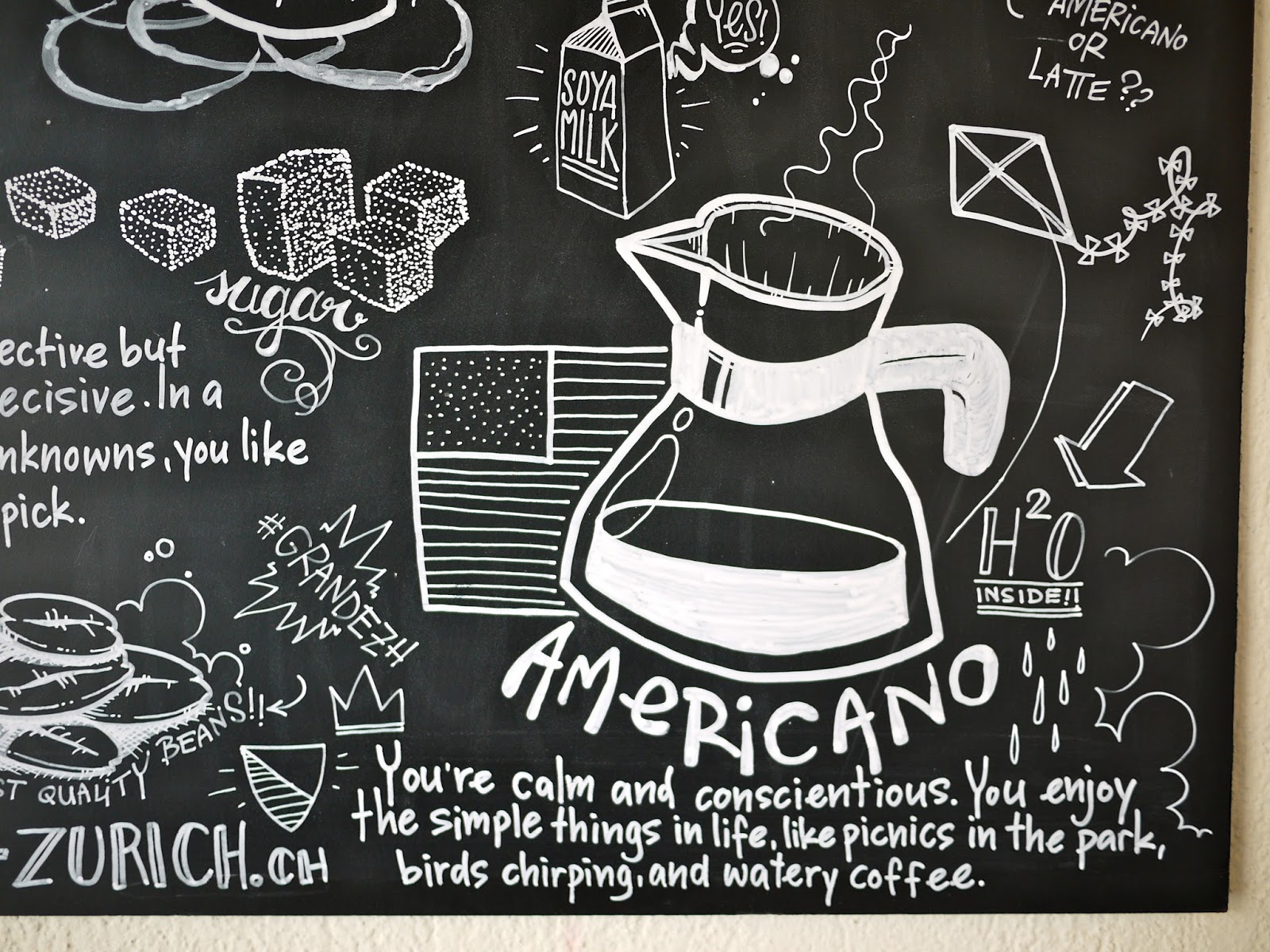 Yesterday I spent all afternoon at Café/Bar Grande painting this funny coffee chart indicating what kind of person you are depending on what kind of coffee you drink. I used white Posca markers to make it look as if it was chalk, love doing stuff like this! Thanks to the Grande Team for the opportunity, the coffee’s and the milonade, I will be back for more! Detail pics of the chart after the click…